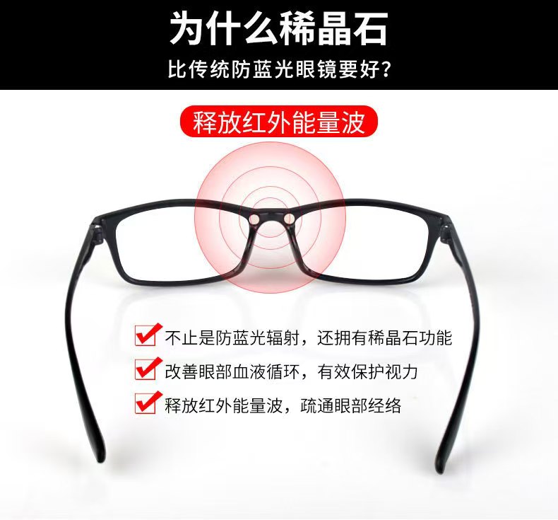 量子防蓝光希晶石眼镜的问世,有效防蓝光、防辐射、抑制缓解视力疲劳,有效保护眼睛。